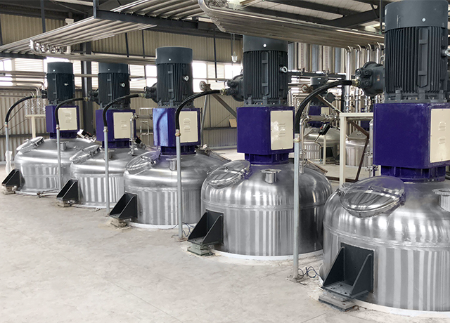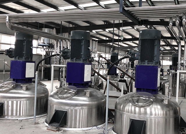 配置高速分散、乳化攪拌釜可根據(jù)需要配置1或2個(gè)高速分散機(jī)、乳化機(jī),分散機(jī)、乳化設(shè)備最高轉(zhuǎn)速可達(dá)2930rpm(常規(guī)1450rpm),線速度20m/s以上,能夠快速的將粉料均勻分散到液料里面;物料由于受到極高的剪切力,分散均勻,形成很好的懸浮效果。 |