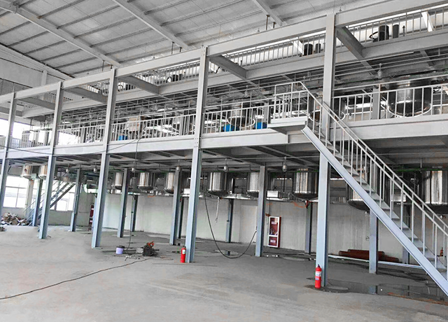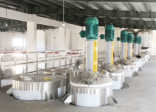 攪拌漿葉在動力機組的驅動下,沿固定方向旋轉;在旋轉過程中,驅使物料做軸向旋轉和徑向旋轉。攪拌機內的物料,同時存在軸向運動和圓周運動,因而同時存在剪切攪拌和擴散攪拌等幾種攪拌形式。能夠有效的對物料進行快速的攪拌、混合。加熱與冷卻的目的提供滿足生產工藝條件的相應溫度(最高溫度300度),滿足反應需要;冷卻還具有冷到到適宜溫度再出料包裝的目的。根據反應的工藝需求,有時需要適宜的壓力來滿足需要,以及相關惰性氣體保護等; 冷凝部分(蒸餾柱、立式冷凝器、臥式冷凝器、分水器)可配合真空系統(tǒng)使用的,目的是收集/回流因加熱而揮發(fā)的部分溶劑產品。加熱系統(tǒng)可以采用水溫機、油溫機、鍋爐等。冷卻系統(tǒng)采用水、蓄水池、冷卻塔、冷卻機組等來實現(xiàn)。