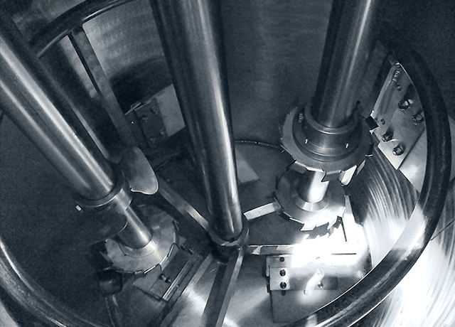 蝶式三軸分散攪拌機(jī)是高效的攪拌混合設(shè)備,攪拌器采用三葉蝶式槳葉,低速運(yùn)轉(zhuǎn)的蝶形攪拌器使物料在缸內(nèi)翻動(dòng)和混合,高速運(yùn)轉(zhuǎn)的齒形分散盤與混合的物料產(chǎn)生強(qiáng)烈的剪切,使聚集物迅速達(dá)到混合、分散、溶解的要求,在攪拌分散的過(guò)程中同時(shí)進(jìn)行抽真空,能有效的提高產(chǎn)品質(zhì)量。